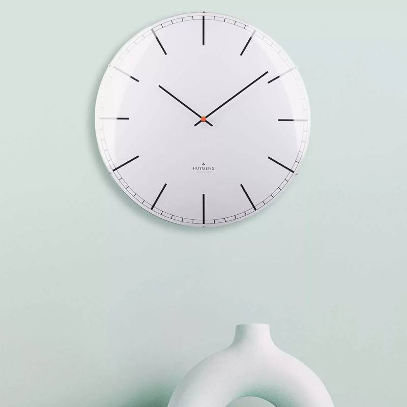 Zegar ścienny Huygens Dome to wspaniały i minimalistyczny zegar pasujący do każdego wnętrza. Zegar o nowoczesnym wzornictwie cyferblatu, ale z wypukłą szklaną osłoną, która przypomina zegary z dawnych czasów.