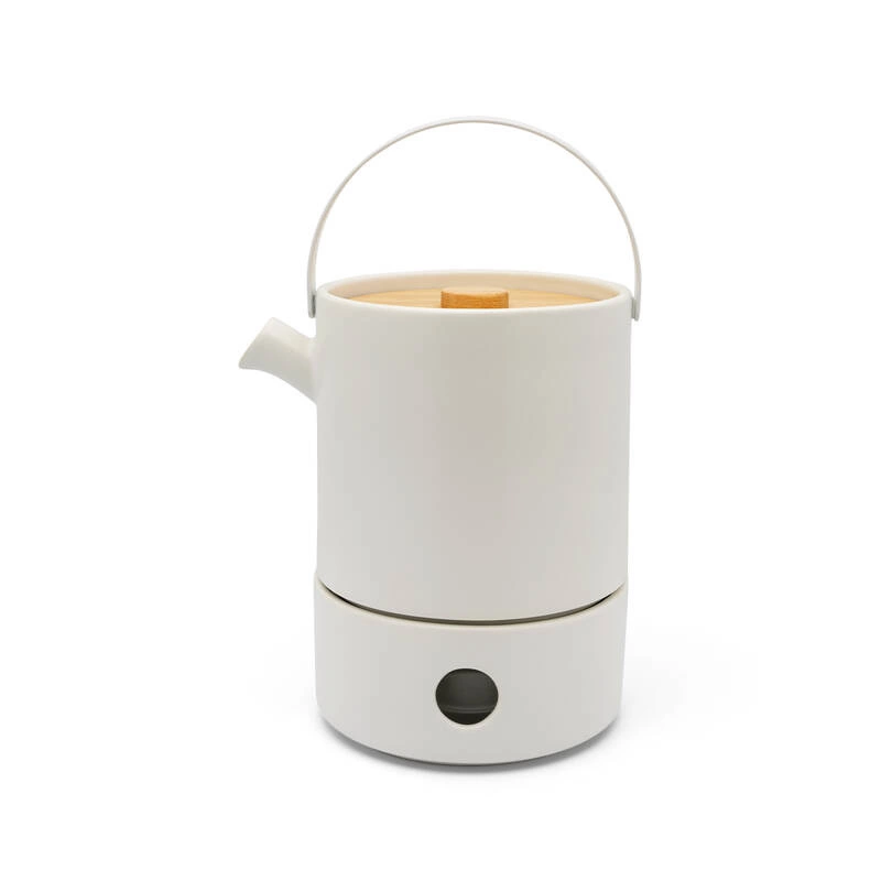 Czajnik do herbaty z podgrzewaczem Bredemeijer na 5 filiżanek czyli 1,2 litra naparu. Bambusowa pokrywka i stalowy uchwyt. ułatwiający wyjmowanie zaparzaczki z dzbanka po parzeniu. W zestawie ceramiczny podgrzewacz na świeczkę tealight. Atrakcyjne opakowanie - ozdobne pudełko kartonowe. Idealnie nadaje się na prezent. Myć ręcznie.