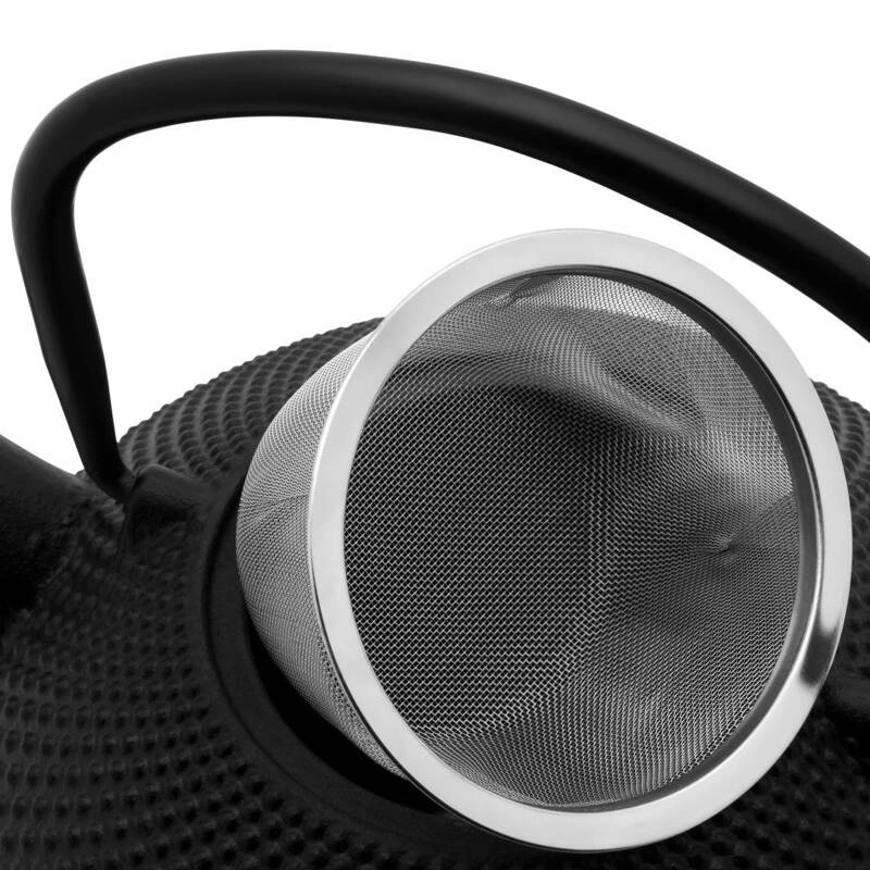 Żeliwny dzbanek Xinjiang do herbaty z ceramiczną emalią wewnątrz. 1 litr pojemności, Dołączony stalowy filtr do parzenia herbaty liściastej. Produkt należy myć ręcznie, a po umyciu należy dokładnie osuszyć, by nie rdzewiał. Przechowywać ze zdjętą pokrywką. Podgrzewacze oraz żeliwne podstawki można dokupić osobno.
