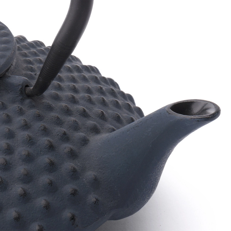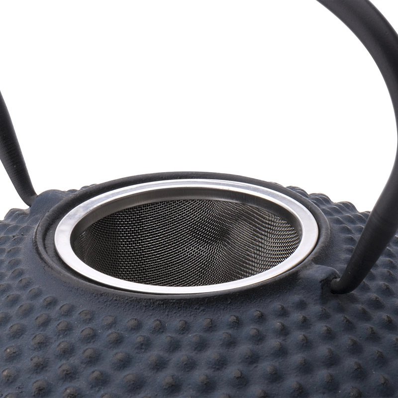 Żeliwny dzbanek XILIN do herbaty w kolorze niebieskim z ceramiczną emalią wewnątrz. 1.25 litra pojemności, Dołączony stalowy filtr do parzenia herbaty liściastej. Produkt należy myć ręcznie, a po umyciu należy dokładnie osuszyć, by nie rdzewiał. Przechowywać ze zdjętą pokrywką. Podgrzewacze oraz żeliwne podstawki można dokupić osobno.