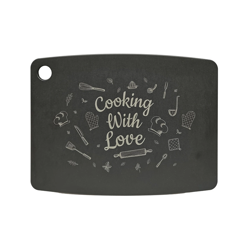 Deska do krojenia z kompozytu papierowego polecana do krojenia pieczywa, wędlin, warzyw i owoców. Wykonana z kompozytu papierowego, składającego się z włókien drzewnych oraz pulpy papierowej, materiałów przyjaznych dla środowiska - papierowa pulpa użyta do produkcji pochodzi wyłącznie z odnawialnych surowców (drewna sosnowego sprowadzonego z USA). Zarówno materiał jak i cały proces produkcji posiadają certyfikat FSC. Oba składniki kompozytu są prasowane i laminowane w wyniku czego otrzymuje się solidny, bardzo trwały materiał o następujących właściwościach: przyjazny dla noży - nie tępi ostrzy noży; bezpieczny do kontaktu z żywnością; nieporowata powierzchnia chroni przed bakteriami; nie wymagają impregnacji i olejowania; odporny na wysokie temperatury do 176oC. Po przygotowaniu na niej mięsa lub ryb wystarczy umyć ją pod bieżącą wodą lub w zmywarce. Jest to deska dwustronna. Myć w zmywarce.