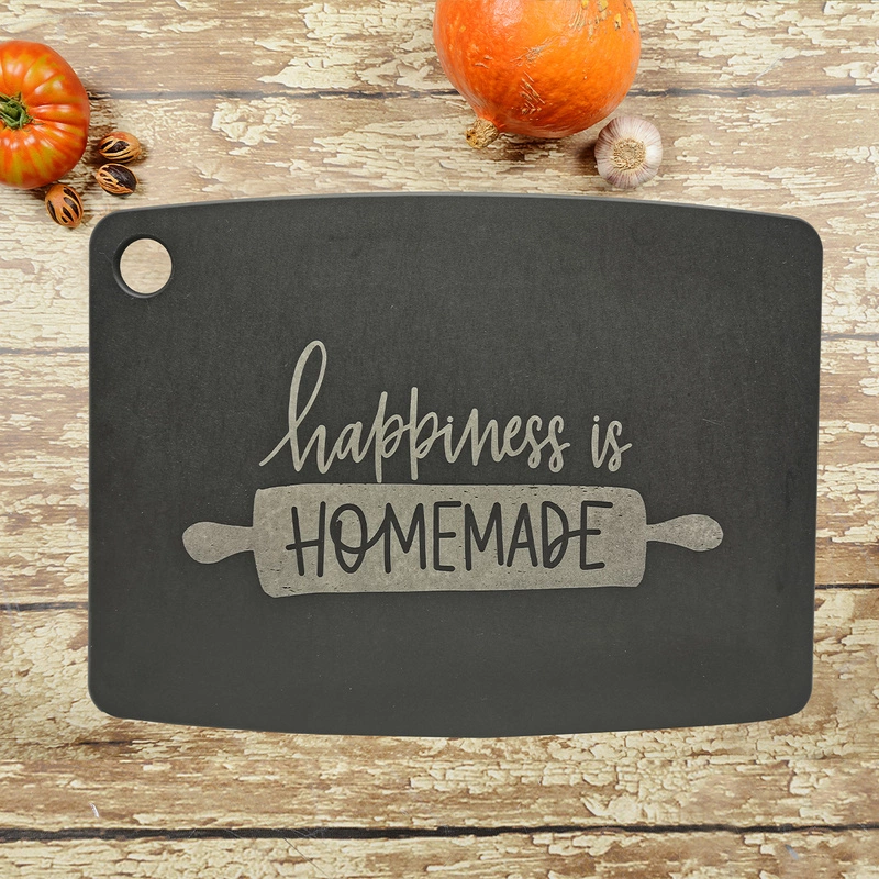 Deska do krojenia z kompozytu papierowego polecana do krojenia pieczywa, wędlin, warzyw i owoców. Wykonana z kompozytu papierowego, składającego się z włókien drzewnych oraz pulpy papierowej, materiałów przyjaznych dla środowiska - papierowa pulpa użyta do produkcji pochodzi wyłącznie z odnawialnych surowców (drewna sosnowego sprowadzonego z USA). Zarówno materiał jak i cały proces produkcji posiadają certyfikat FSC. Oba składniki kompozytu są prasowane i laminowane w wyniku czego otrzymuje się solidny, bardzo trwały materiał o następujących właściwościach: przyjazny dla noży - nie tępi ostrzy noży; bezpieczny do kontaktu z żywnością; nieporowata powierzchnia chroni przed bakteriami; nie wymagają impregnacji i olejowania; odporny na wysokie temperatury do 176oC. Po przygotowaniu na niej mięsa lub ryb wystarczy umyć ją pod bieżącą wodą lub w zmywarce. Jest to deska dwustronna. Myć w zmywarce.
