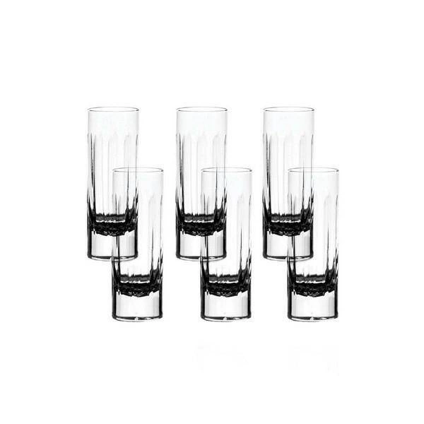 Zestaw prezentowy sześciu kryształowych kieliszków do wódki GATAN z prostymi żłobieniami w eleganckim brendowanym opakowaniu,