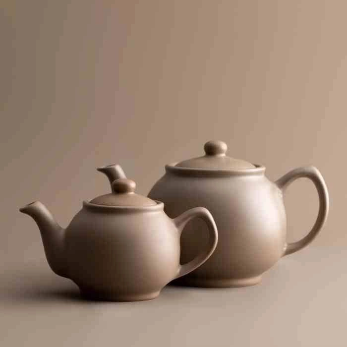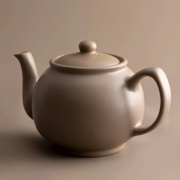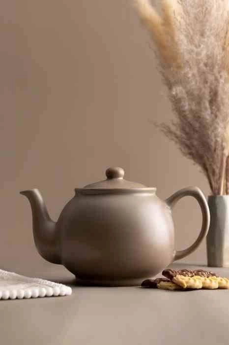 PK - Imbryk 1,1l. taupe mat- imbryk do herbaty o kształcie Brown Betty (umożliwia swobodne wirowanie liści herbaty uwalniając smak), - posiada niekapiący dzióbek, - pojemność na ok. 6 filiżanek, - wykonany z trwałej kamionki, - nadaje się do mikrofalówki, - można myć go w zmywarce. Wymiary: 24 x 14,5 x 13,5 cm (dł. x szer. x wys.) Pojemność: 1,1 l Materiał: kamionka Kolor: taupe