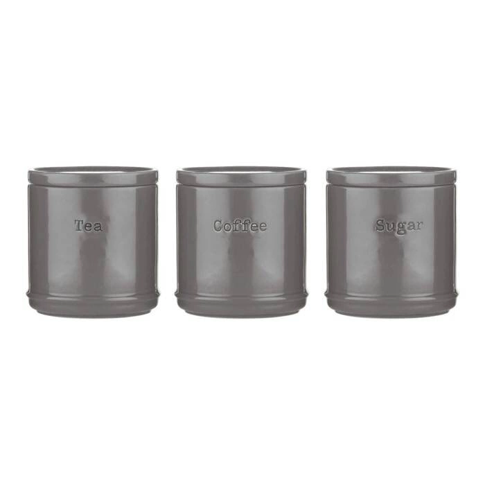 PK - Zestaw 3 pojemników ceramicznych, szary, Acce- komplet pojemników na herbatę, kawę i cukier (każdy podpisany nazwą w j. angielskim),
