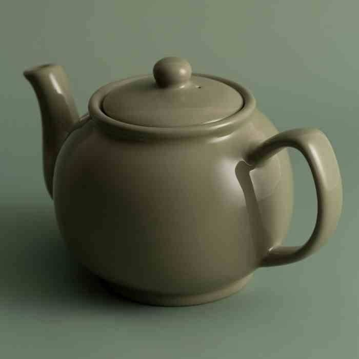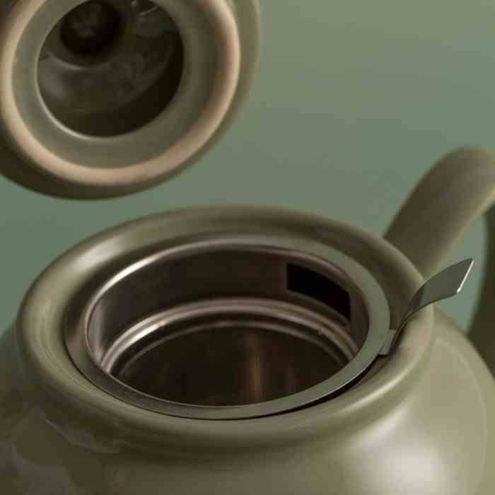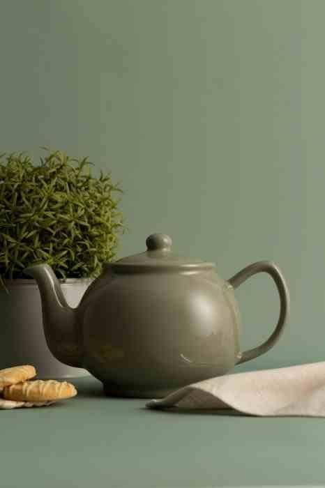 PK - Imbryk 1,1l. szałwiowy - imbryk do herbaty o kształcie Brown Betty (umożliwia swobodne wirowanie liści herbaty uwalniając smak), - posiada niekapiący dzióbek, - pojemność na ok. 6 filiżanek, - wykonany z trwałej kamionki, - nadaje się do mikrofalówki, - można myć go w zmywarce. Wymiary: 22,8 x 14,2 x 14 cm (dł. x szer. x wys.) Pojemność: 1,1 l Materiał: kamionka Kolor: zielony