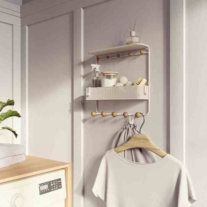 Umbra - Wieszak z półką, biały/naturalny, ESTIQUE