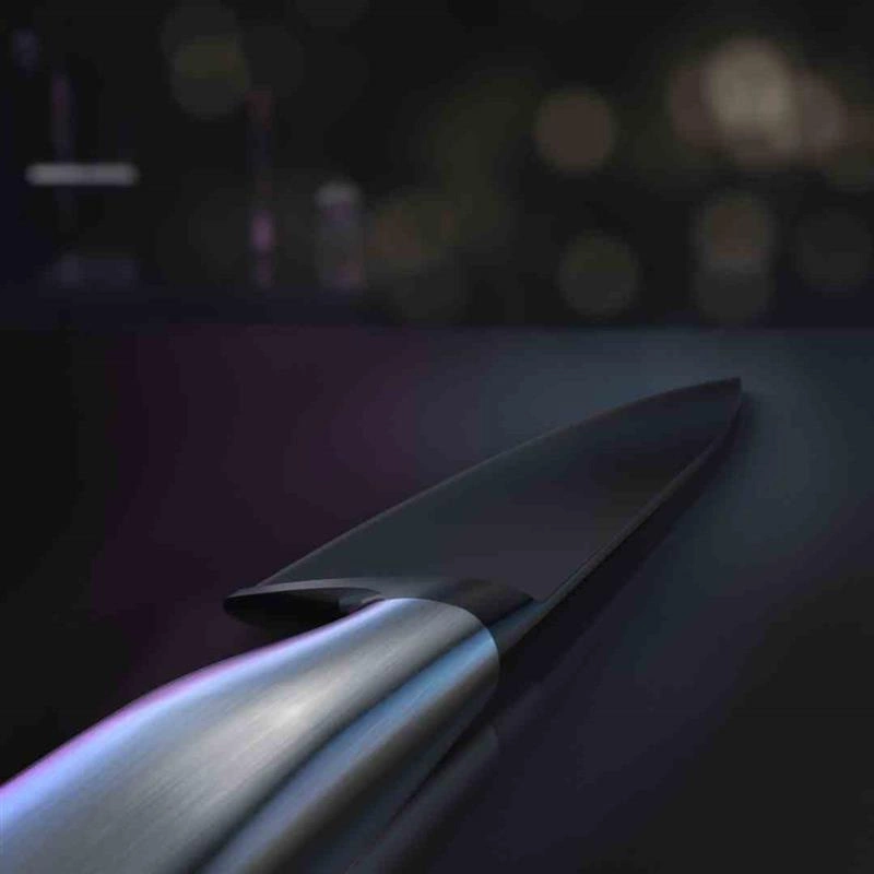 - 1x noż szefa, ostrze wykoanne  w kolorze czarnym