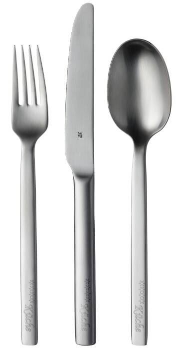 WMF - Zestaw sztućców 30 el., Alteo matt - komplet dla 6 osób, - zestaw złożony z: 6 x łyżka stołowa, 6 x widelec, 6 x nóż, 6 x łyżeczka do kawy, 6 x widelec do ciasta, - wykonane z matowej stali nierdzewnej 18/10 Cromargan Protect, - nadają się do mycia w zmywarce. Kolor: srebrny matt Materiał: Cromargan ® stal nierdzewna18/10 Kolekcja: Alteo