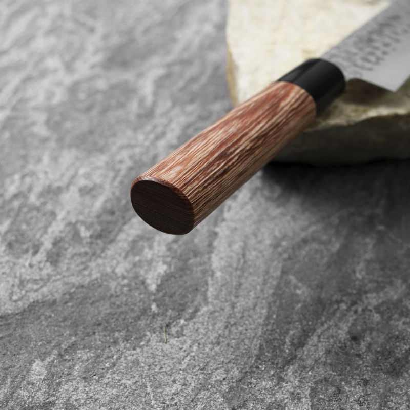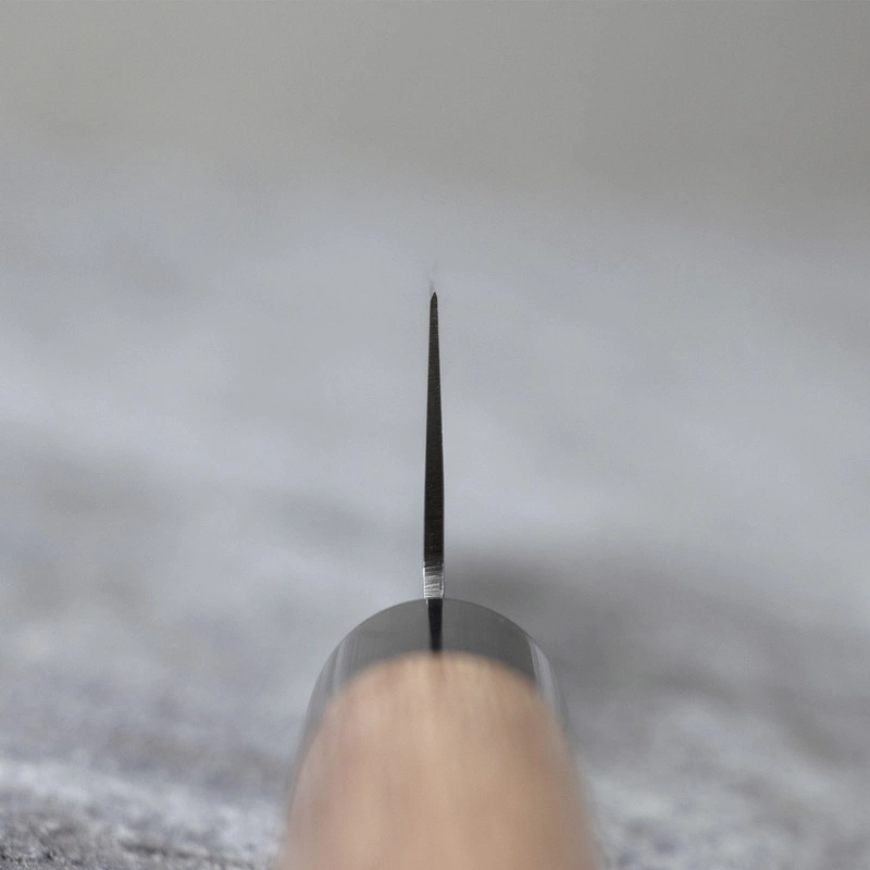 Średniej wielkości, wszechstronny nóż, przeznaczony głównie do krojenia mięsa, lecz równie przydatny jako narzędzie uniwersalne, którym swobodnie posiekamy zioła lub pokroimy warzywa w kostkę czy w plastry. Szerokie, cienkie ostrze błyskawicznie i schludnie przetnie grubsze produkty, nie uszkadzając przy tym delikatnych składników.