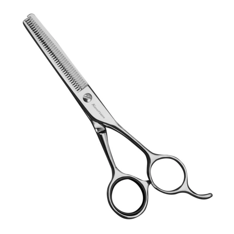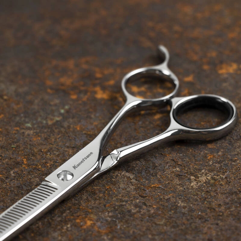 Nożyczki fryzjerskie japońskiej firmy Kanetsune są wykonane ze stali nierdzewnej AUS8. Pozwalają na wygodną pracę przy przerzedzaniu włosów. Ramiona połączone są śrubą, umożliwiającą rozłożenie nożyczek do czyszczenia lub ostrzenia.