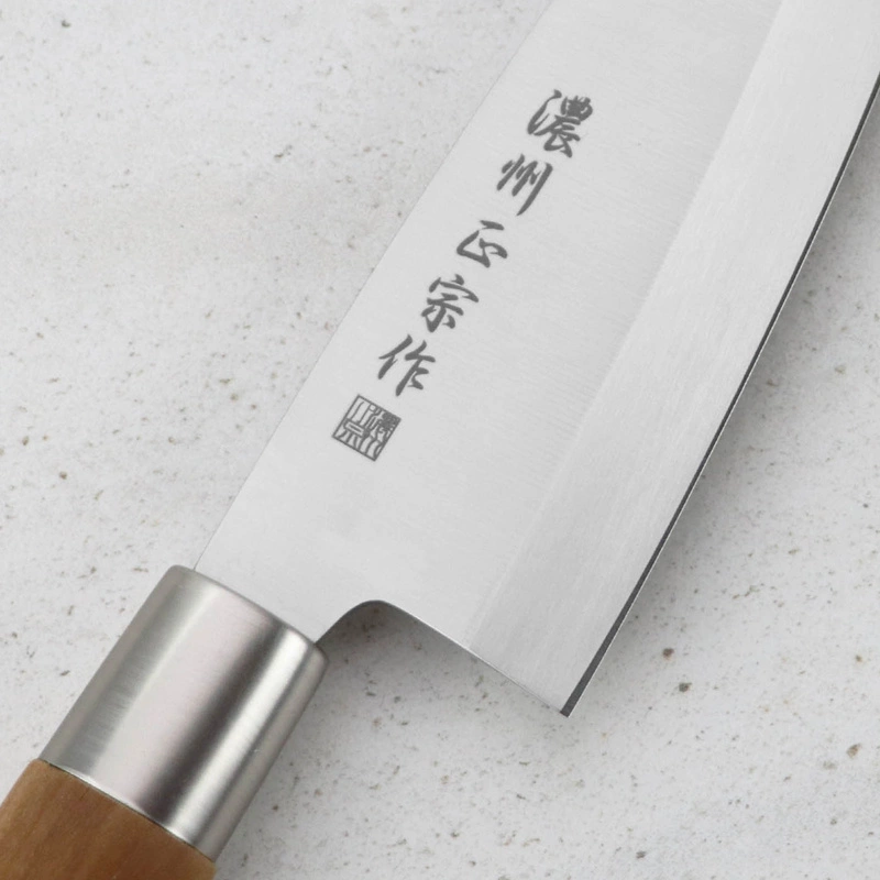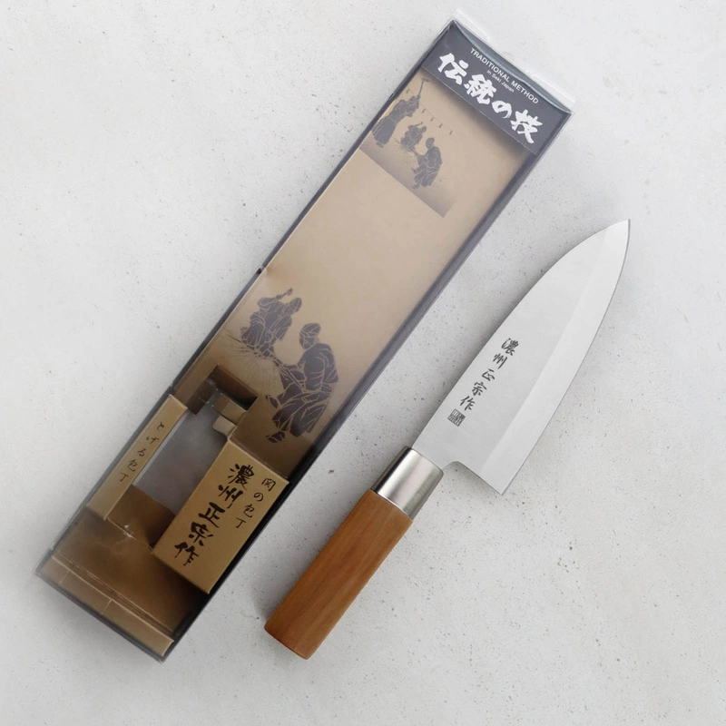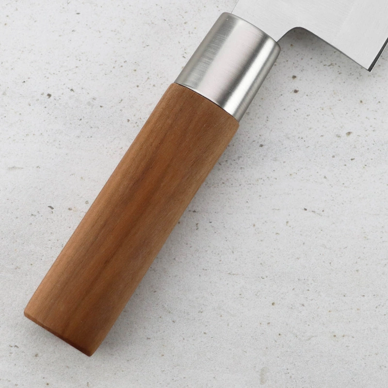 Tradycyjny japoński nóż z grubą, zwężającą się klingą, który służy do odgławiania i filetowania ryb w taki sposób, żeby nie uszkodzić ich delikatnego mięsa. W Japonii bywa często używany do sprawiania mięsa drobiowego, ale nie jest klasycznym tasakiem i nie powinno się nim mocno uderzać. Aby przeciąć ość, wystarczy lekko nacisnąć grzbiet noża i wykonać szybkie, precyzyjne cięcie. Ostry czubek i krótkie ostrze ułatwiają kontrolę ruchów, co jest szczególnie ważne, gdy trzeba dostać się nożem do ciasnych miejsc.