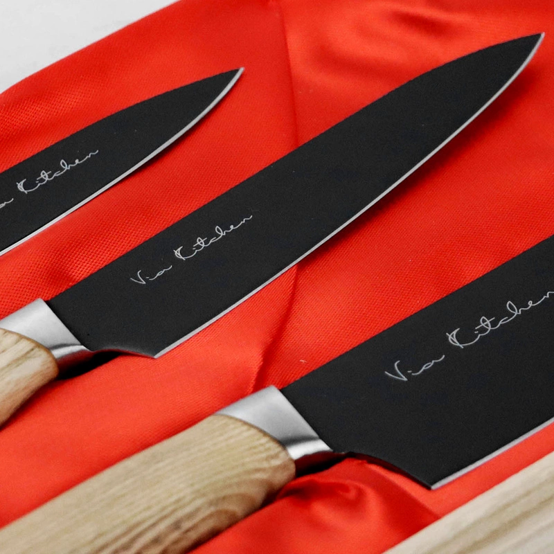 Satake - Black Ash Zestaw 3 noży w drewnianym pudełku