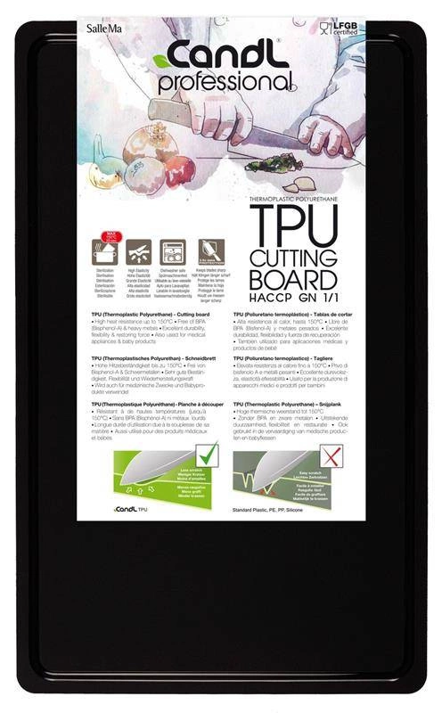 Mata wykonana jest z termoplastycznego poliuretanu (TPU). Materiał ten zapewnia wysoki poziom elastyczności, dzięki czemu działa jak bufor zapobiegający tępieniu się ostrzy noży, w wyniku czego ostrza dłużej pozostają ostre. Duża gęstość i elastyczność tworzywa zmniejsza uderzenia i nacięcia powstające podczas krojenia i siekania, co ogranicza przyjmowanie smaku, zapachu oraz koloru krojonych produktów. Maty do krojenia marki CandL są od 3 do 5 razy bardziej odporne na nacięcia w porównaniu do innych desek z drewna oraz z popularnych tworzyw.