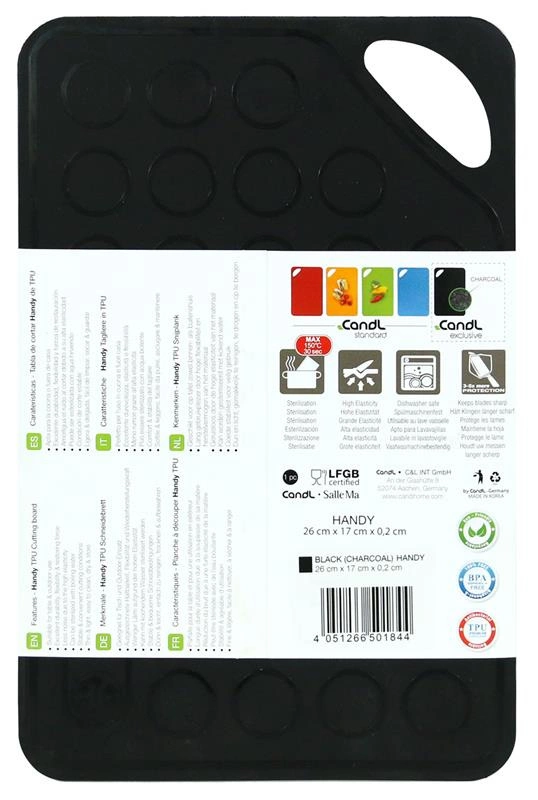 Mata wykonana jest z termoplastycznego poliuretanu (TPU). Materiał ten zapewnia wysoki poziom elastyczności, dzięki czemu działa jak bufor zapobiegający tępieniu się ostrzy noży, w wyniku czego ostrza dłużej pozostają ostre. Duża gęstość i elastyczność tworzywa zmniejsza uderzenia i nacięcia powstające podczas krojenia i siekania, co ogranicza przyjmowanie smaku, zapachu oraz koloru krojonych produktów. Maty do krojenia marki CandL są od 3 do 5 razy bardziej odporne na nacięcia w porównaniu do innych desek z drewna oraz z popularnych tworzyw.
