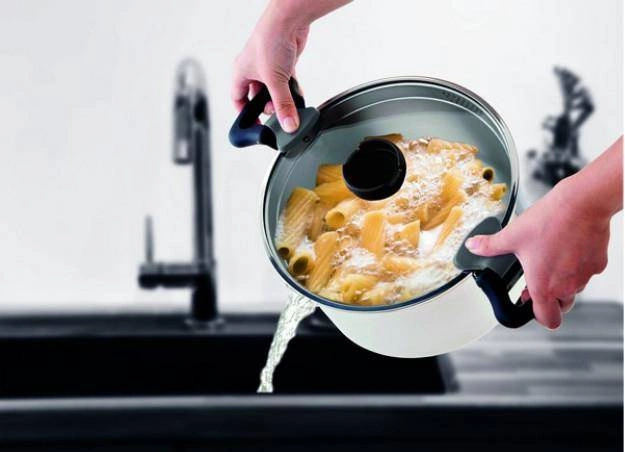 • uzupełniające uchwyty podtrzymujące pokrywę podczas odcedzania