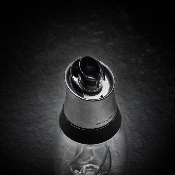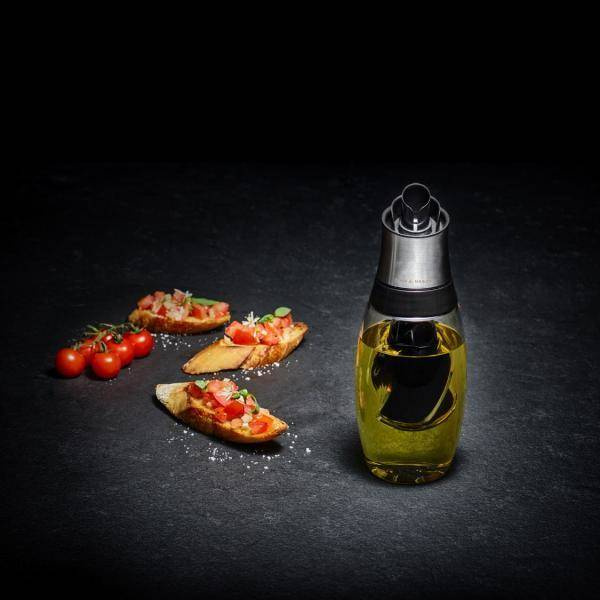Korek częściowo wykończony matową stalą, posiada regulację dozowania zawartości - ocet lub olej. Specjalny kształt zapobiega przypadkowemu rozlaniu, chroni przed wietrzeniem czy pyłkami, które mogłyby wpaść do środka.