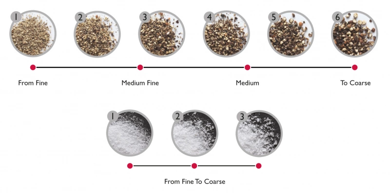 Młynek ma wysokość 16,5 cm, jest przystosowany do mielenia pieprzu i został wyposażony mechanizm precision z utwardzonej stali węglowej, który jest trwalszy od innych mechanizmów stalowych, co potwierdza dożywotnia gwarancja na ten element udzielana przez producenta. Windermere posiada krokową regulację mielenia, pozwalającą na precyzyjne ustawienie stopnia zmielenia pieprzu w 6 ustawieniach grubości, przez co zmienia się smak i aromat przyprawy. Grubszy pieprz możesz dodać do steków, a drobniej zmielony, np. do sosu czy zupy. Młynek w bardzo prosty sposób można napełnić przyprawą poprzez zdjęcie jego górnej części.
