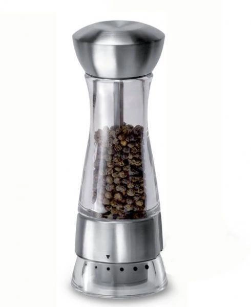 Prezentowany młynek wykonany jest z połączenia akrylu, który jest w pełni przeźroczysty z matową stalą nierdzewną. Budowa młynka sprawia, że możesz kontrolować jaka przyprawa i jaka jej ilość znajduje się wewnątrz. Dodatkowo Twoja przyprawa jest ozdobą stołu! Akryl jest materiałem wysokiej jakości, nie żółknie jak szkło, czy plastik, jest też od nich trwalszy.