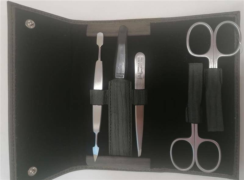 Erbe Solingen - Zestaw do manicure 5 cz. stal niklowana, grafitowe etui typu folder