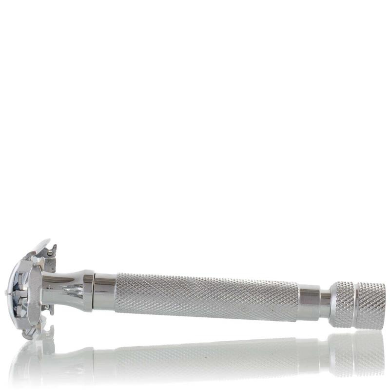 Maszynka jest wyposażona w zapięcie mechanizmem motylkowym, dzięki któremu wymiana żyletek jest bezpieczna i wygodna. Zapięcie ostrza można otworzyć za pomocą pokrętła w dolnej części maszynki. Karbowany wzór przypominający szachownicę sprawia, że rękojeść maszynki jest szczególnie antypoślizgowa w dłoni.