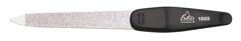 Wykonany ze stali chromowanej powlekanej szafirowym pyłem. Z jednej strony gruboziarnisty - szybko nada pazokciom pożądany kształt, z drugiej drobnoziarnisty do ich wygładzania