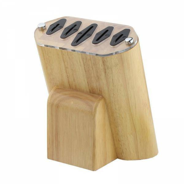 Blok wykonany z drewna kauczukowego, ma klasyczny wygląd, który idealnie komponuje się z rękojeściami noży.
