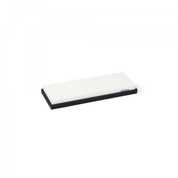 - Umieścić namoczony kamień na antypoślizgowej podstawie, a następnie ustawić odpowiedni kąt ostrzenia. Kąt ostrzenia może być różny w zależności od ostrza - w przypadku większości japońskich noży będzie to 15 stopni, a europejskich 20-25 stopni, żeby precyzyjnie utrzymać właściwy kąt można użyć prowadnicy/trymera do ostrzenia noży na kamieniu.
