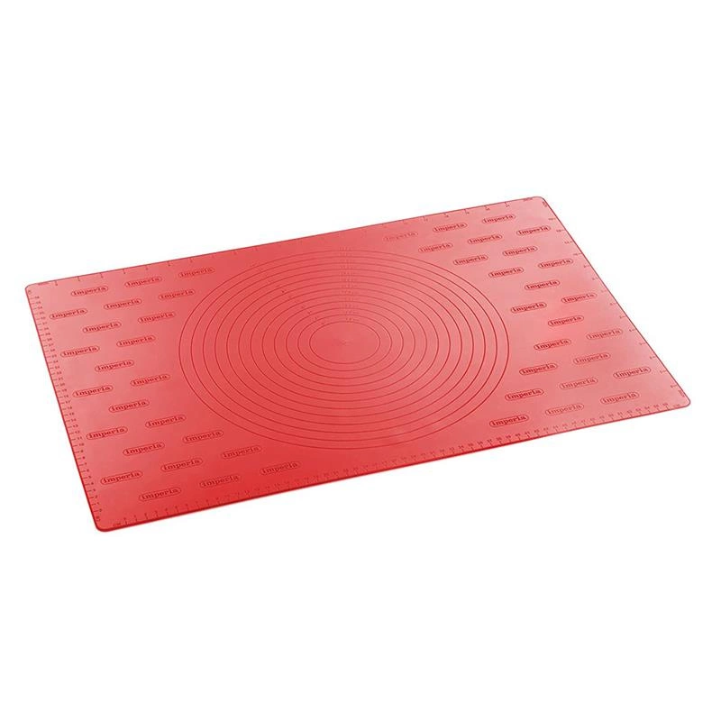 Na powierzchni maty umieszczono miarkę pomocną podczas przygotowywania idealnego rozmiaru ciasta w zależności od wielkości formy do pieczenia.