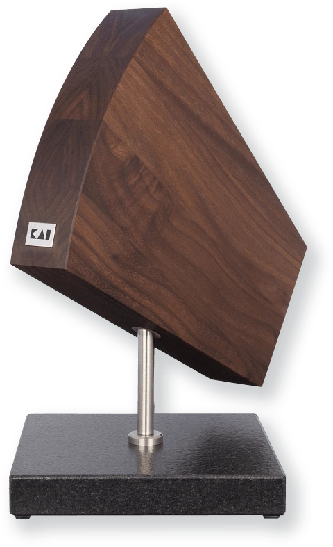 Marka Kai proponuje blok oparty na konstrukcji powstałej z połączenia dwóch naturalnych materiałów, jakimi są granit i drewno orzecha. Stojak do noży poza niecodziennym wyglądem jest także bardzo funkcjonalny.