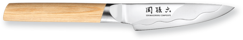 Seria Seki Magoroku Composite składa się z ośmiu noży o różnych ostrzach. Ostrza w tej serii to niezwykły kunszt sztuki kuchennej, które oprócz wysokich walorów użytkowych posiadają unikalny wygląd. Nazwa composite odnosi się do użycia dwóch rodzajów stali.