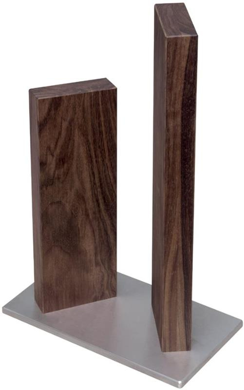 Stalowa podstawa zapewnia stabilność, a jej spód wyposażony jest antypoślizgowe elementy zabezpieczające kuchenny blat. Na podstawie umieszczone zostały drewniane belki wykonane z drewna orzecha, wewnątrz których znajdują się silne magnesy mogące utrzymać ostrze noży. Maksymalna szerokość ostrza to 6,5 cm, maksymalna długość ostrza to 27 cm. Na stojaku jednocześnie można przechowywać 4 noże.