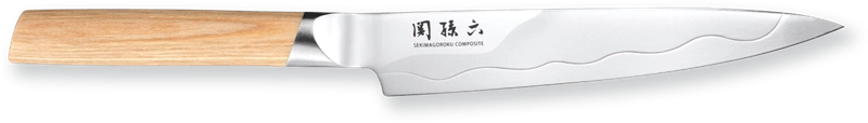 Seria Seki Magoroku Composite składa się z ośmiu noży o różnych ostrzach. Ostrza w tej serii to niezwykły kunszt sztuki kuchennej, które oprócz wysokich walorów użytkowych posiadają unikalny wygląd. Nazwa composite odnosi się do użycia dwóch rodzajów stali.