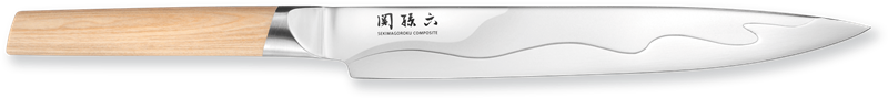 Seria Seki Magoroku Composite składa się z ośmiu noży o różnych ostrzach. Ostrza w tej serii to niezwykły kunszt sztuki kuchennej, które oprócz wysokich walorów użytkowych posiadają unikalny wygląd. Nazwa composite odnosi się do użycia dwóch rodzajów stali.
