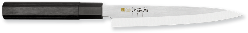 Prezentowany nóż posiada jednostronne ostrze o długości 18 cm, typu YANAGIBA - jest to jedno z najważniejszych tradycyjnych japońskich ostrzy. Wąskie i niezwykle ostre ostrze, które jest niezastąpione podczas krojenia w cienkie, idealne plasterki surowej ryby podczas przyrządzania sushi czy sashimi.