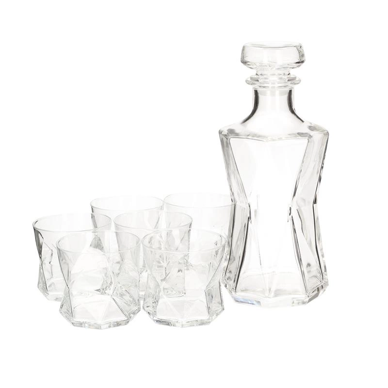 Zestaw do whisky z kolekcji Cassiopea - karafka oraz 6 szklanek. Karafka, jak i szklanki charakteryzują się eleganckim i wyrafinowanym designem, z intrygującym geometrycznym wzorem.