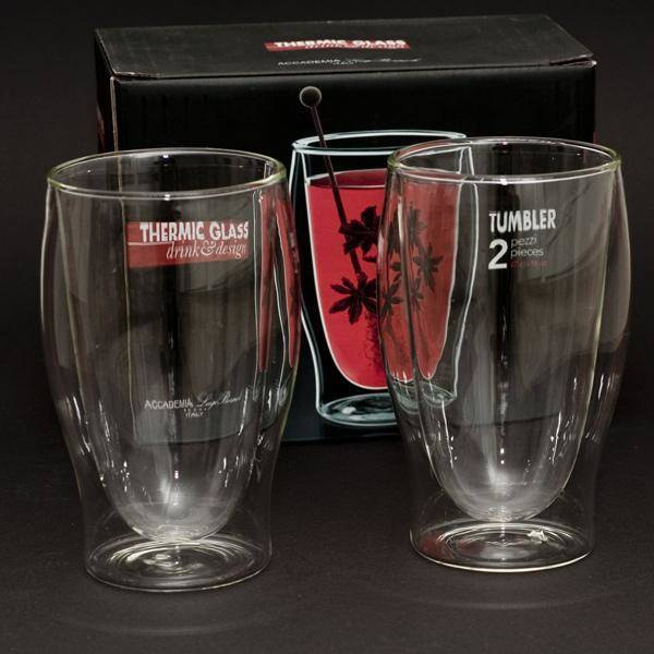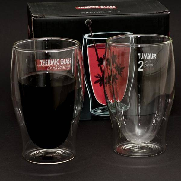 Dwuścienna szklana konstrukcja oddzielona jest próżnią, co pozwala na doskonałą izolację termiczną i zapobiega kondensacji na zewnętrznej ściance - gorące napoje nie parzą w dłoń, a zimne nie powodują wilgotnej na zewnątrz szklanki. W rezultacie temperatura gorącego napoju utrzymuje się dłużej niż w przypadku innych materiałów, takich jak ceramika lub porcelana. Ten sam efekt uzyskujemy podczas serwowania zimnych napojów, pożądana temperatura jest utrzymywana przez dłuższy czas, zapobiegając efektowi spoconej szklanki.