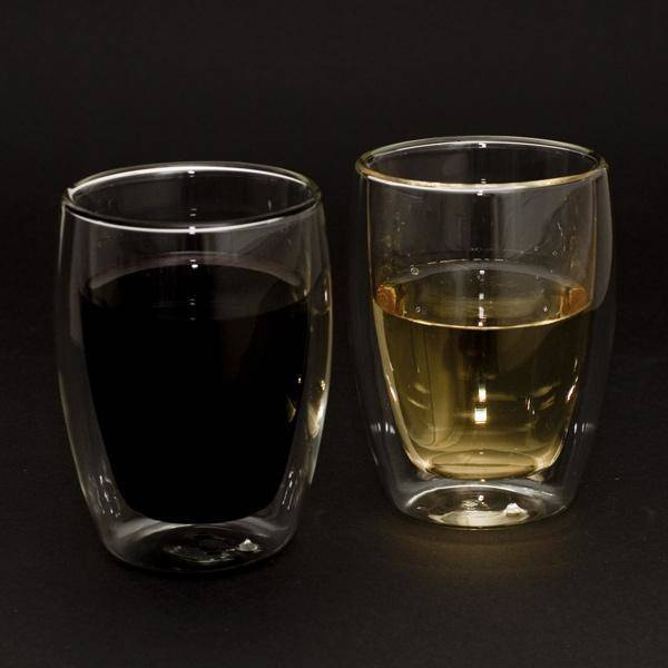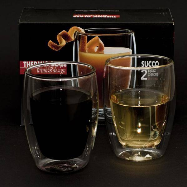 Dwuścienna szklana konstrukcja oddzielona jest próżnią, co pozwala na doskonałą izolację termiczną i zapobiega kondensacji na zewnętrznej ściance - gorące napoje nie parzą w dłoń, a zimne nie powodują wilgotnej na zewnątrz szklanki. W rezultacie temperatura gorącego napoju utrzymuje się dłużej niż w przypadku innych materiałów, takich jak ceramika lub porcelana. Ten sam efekt uzyskujemy podczas serwowania zimnych napojów, pożądana temperatura jest utrzymywana przez dłuższy czas, zapobiegając efektowi spoconej szklanki.