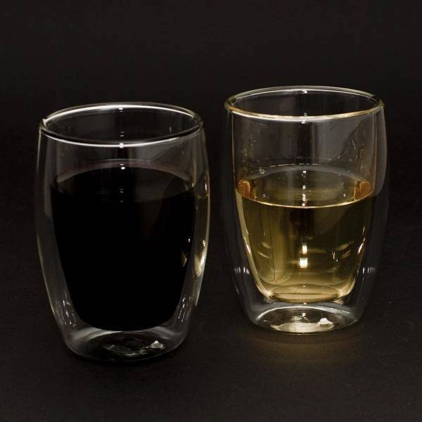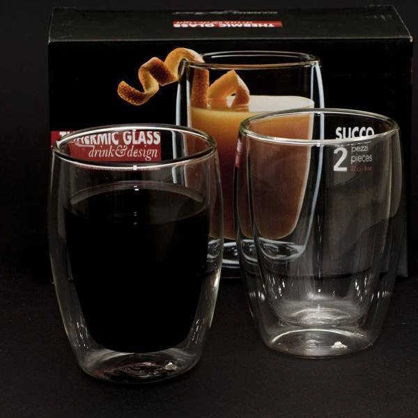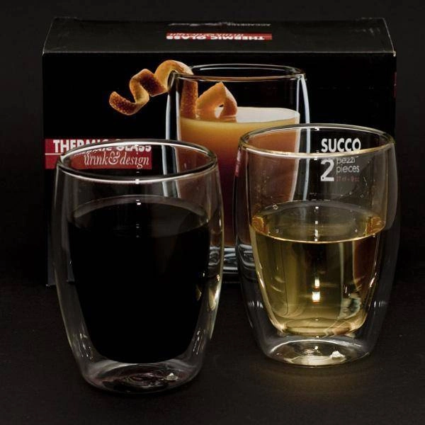 Dwuścienna szklana konstrukcja oddzielona jest próżnią, co pozwala na doskonałą izolację termiczną i zapobiega kondensacji na zewnętrznej ściance - gorące napoje nie parzą w dłoń, a zimne nie powodują wilgotnej na zewnątrz szklanki. W rezultacie temperatura gorącego napoju utrzymuje się dłużej niż w przypadku innych materiałów, takich jak ceramika lub porcelana. Ten sam efekt uzyskujemy podczas serwowania zimnych napojów, pożądana temperatura jest utrzymywana przez dłuższy czas, zapobiegając efektowi spoconej szklanki.