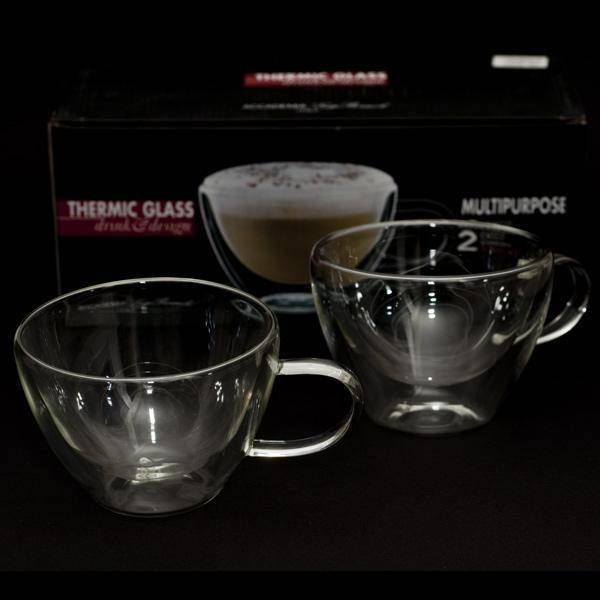 Dwuścienna szklana konstrukcja oddzielona jest próżnią, co pozwala na doskonałą izolację termiczną i zapobiega kondensacji na zewnętrznej ściance - gorące napoje nie parzą w dłoń, a zimne nie powodują wilgotnej na zewnątrz szklanki. W rezultacie temperatura gorącego napoju utrzymuje się dłużej niż w przypadku innych materiałów, takich jak ceramika lub porcelana. Ten sam efekt uzyskujemy podczas serwowania zimnych napojów, pożądana temperatura jest utrzymywana przez dłuższy czas, zapobiegając efektowi spoconej szklanki.