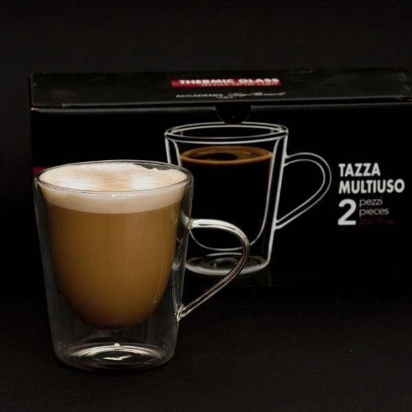 Dwuścienna szklana konstrukcja oddzielona jest próżnią, co pozwala na doskonałą izolację termiczną i zapobiega kondensacji na zewnętrznej ściance - gorące napoje nie parzą w dłoń, a zimne nie powodują wilgotnej na zewnątrz szklanki. W rezultacie temperatura gorącego napoju utrzymuje się dłużej niż w przypadku innych materiałów, takich jak ceramika lub porcelana. Ten sam efekt uzyskujemy podczas serwowania zimnych napojów, pożądana temperatura jest utrzymywana przez dłuższy czas, zapobiegając efektowi spoconej szklanki.