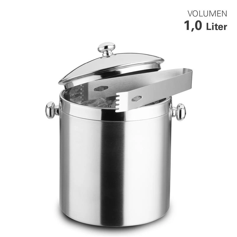 Podczas spotkań przy stole zwłaszcza w upalne dni warto do napojów dodać kostki lodu, wtedy niezbędne staje się naczynie, w którym przeniesiemy lód oraz w estetyczny sposób je podamy. Pojemnik do lodu marki Weis posiada konstrukcję opartą na dwóch stalowych ściankach, które oddzielone są próżnią. Pozwala to na dłuższy czas utrzymywania niskiej temperatury i nieroztapianie się kostek lodu, jak również zapobiega powstawaniu na zewnętrznej ściance wilgoci.Pojemnik oraz szczypce wykonane są ze stali nierdzewnej. Korpus pojemnika wykonany jest ze stali matowej, pokrywa ze stali polerowanej.