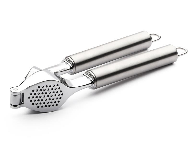 Wyciskacz do czosnku Practic ułatwi pracę każdemu domowemu kucharzowi. Uchwyty wyciskacza zostały wykonane z matowej stali nierdzewnej, pewnie leżą w dłoni. Natomiast część robocza to chromowane aluminium.