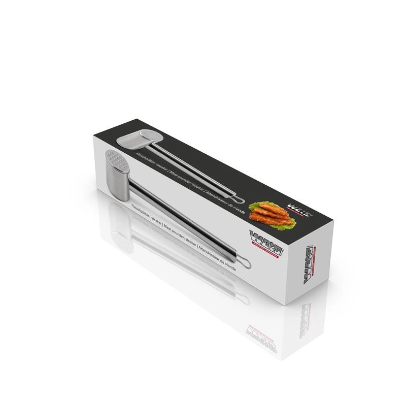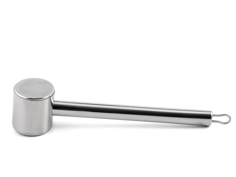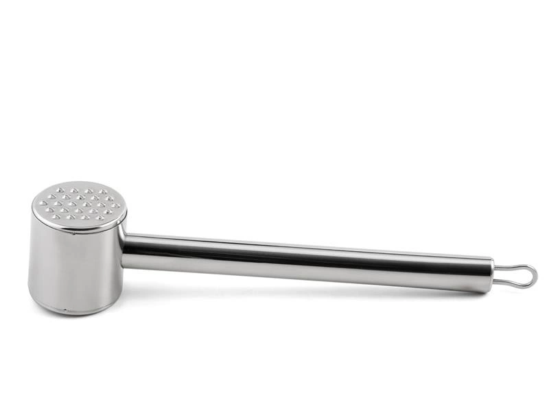 Dwustronny tłuczek do mięsa został wykonany z stali nierdzewnej.
