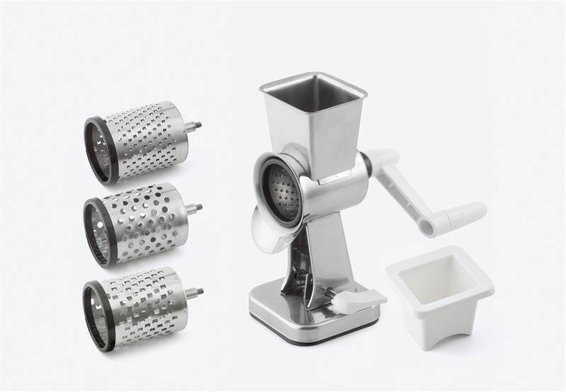 Kuchenna tarka w formie maszynki, z którą przygotowanie domowej surówki, starcie sera lub orzechów i czekolady do deserów zajmie niewiele czasu.