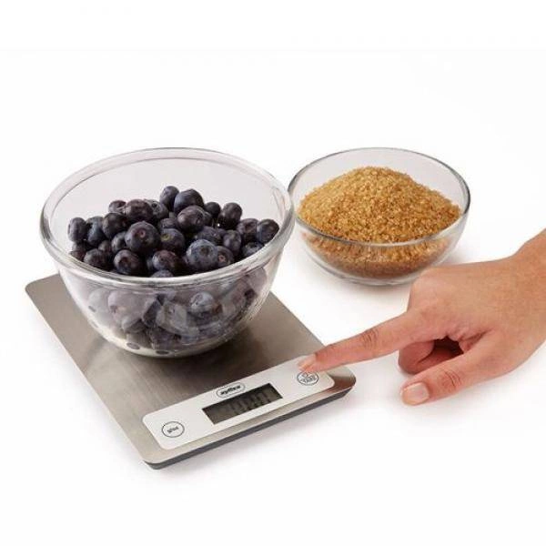 Prostokątna waga cyfrowa marki Zyliss wykonana ze stali nierdzewnej i wysokiej jakości tworzywa zachwyca wyglądem i możliwościami.