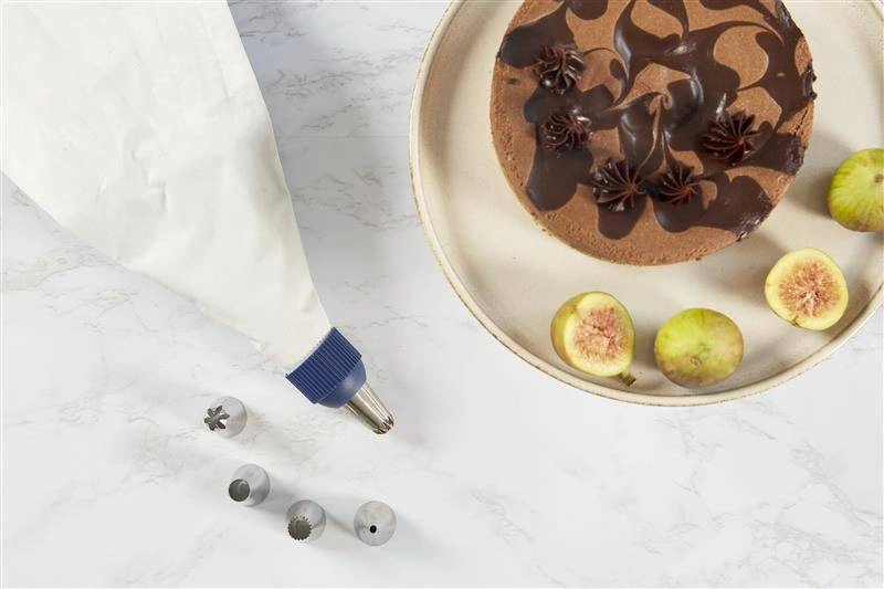 Rękaw cukierniczy do zdobień na ciastach, tortach lub babeczkach. Znajdzie wykorzystanie także podczas nadziewania słodkich wypieków oraz pączków. Można go używać do dekoracji kanapek, formowania bez, bezików, ciastek z ciasta parzonego - eklerów, ptysi.