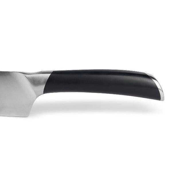Noże Comfort Pro mają konstrukcję, tzw. full tang (z jednego kawałka), które stanowi idealne połączenie równowagi i ergonomii. Funkcjonalność noży została zwiększona poprzez dodatkowe wcięcie na palec na rękojeści ułatwiające precyzyjne krojenie oraz specjalne wgłębienie na ostrzu zapewnianiające większą kontrol podczas siekania.