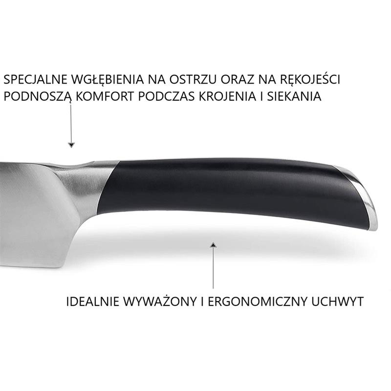 - specjalne wgłębienia na palec na ostrzu noża oraz na kciuk na rączce