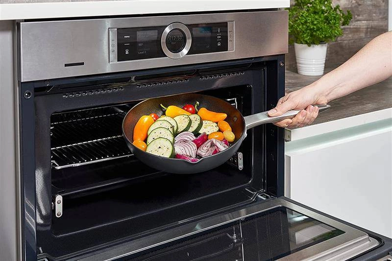 Patelnie z serii posiadają ergonomiczny, nitowany stalowy uchwyt, zapewniający pewny chwyt podczas smażenia. Możliwe jest wykorzystywanie naczyń w piekarniku do temperatury 230ºC oraz mycie w zmywarce.